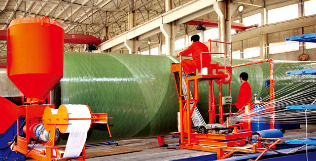 大型現(xiàn)場(chǎng)玻璃鋼儲(chǔ)罐介紹 大型現(xiàn)場(chǎng)玻璃鋼儲(chǔ)罐以熱固性樹(shù)脂為基體材料,玻璃纖維為增強(qiáng)材料,采用連續(xù)纖維進(jìn)行螺旋纏繞,工藝先進(jìn),結(jié)構(gòu)合理。具備一般玻璃鋼儲(chǔ)罐的輕質(zhì)高強(qiáng)、耐化學(xué)腐...