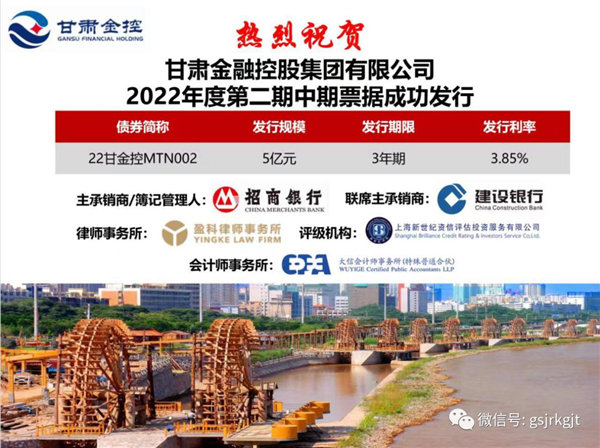 6月13日,甘肅金融控股集團有限公司2022年第二期中期票據成功發(fā)行,募集資金5億元。