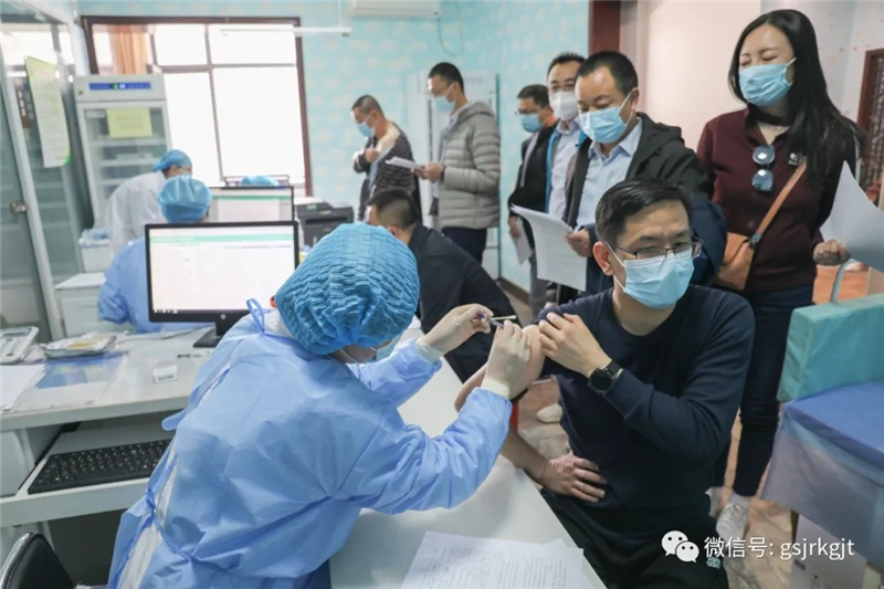 根據(jù)中央和省委省政府關(guān)于新冠病毒疫苗接種工作安排,金控集團(tuán)第一時(shí)間安排部署,制定實(shí)施方案,全員摸排接種需求,完成自主建卡,銜接接種時(shí)間。3月28日,根據(jù)街道社區(qū)安排,集團(tuán)組織機(jī)關(guān)和蘭內(nèi)子公司符合接種條件員工,到東崗西路街道社區(qū)衛(wèi)生服務(wù)中心集體接種新冠疫苗第一針。蘭外子公司也積極聯(lián)系所在地社區(qū)醫(yī)院,陸續(xù)接種疫苗。