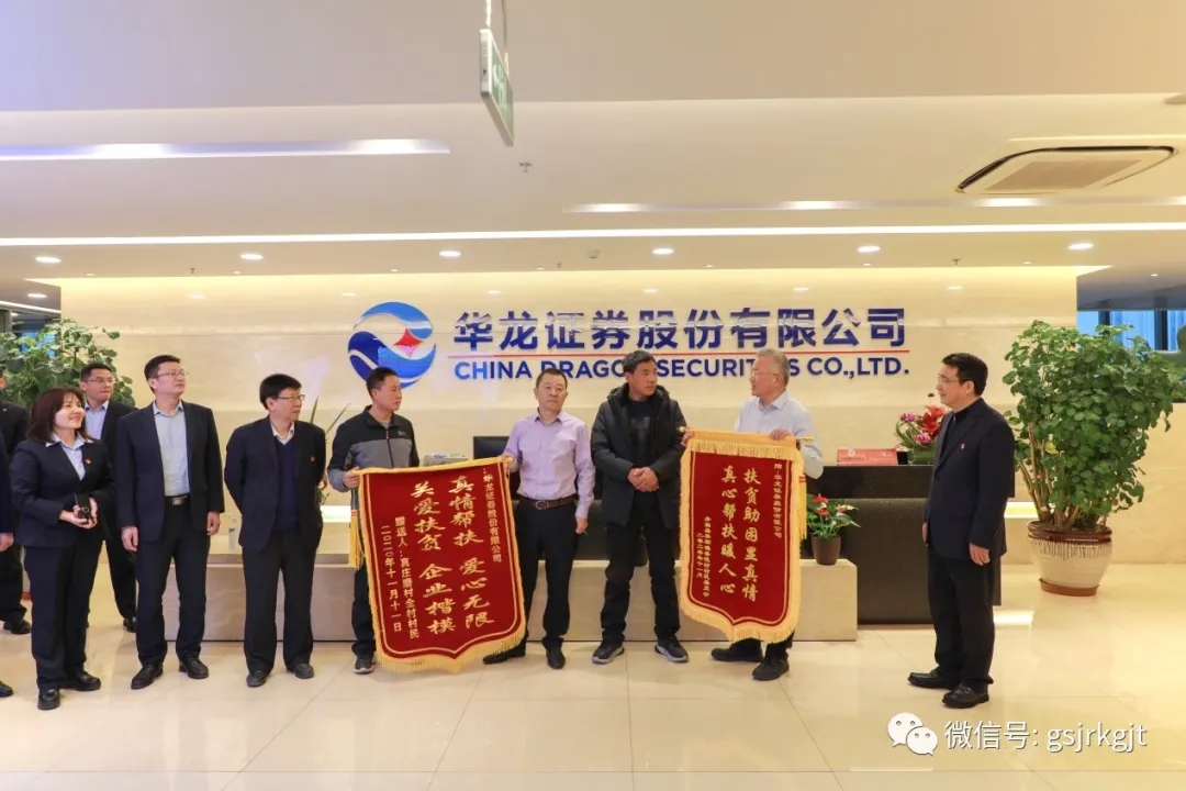 12月1日上午,華龍證券定點(diǎn)幫扶村舟曲縣果耶鎮(zhèn)吾德村黨支部書(shū)記黃幫周和真莊磨村黨支部書(shū)記韓軍龍一行向公司贈(zèng)送“扶貧助困顯真情,真心幫扶暖人心”和“真情幫扶、愛(ài)心無(wú)限,關(guān)愛(ài)扶貧,企業(yè)楷模”錦旗。金控集團(tuán)華龍證券黨委書(shū)記、董事長(zhǎng)陳牧原,華龍證券黨委副書(shū)記、總經(jīng)理蘇金奎代表公司接受錦旗。金控集團(tuán)黨委副書(shū)記、總經(jīng)理雷鐵,黨委委員、派駐紀(jì)檢監(jiān)察組組長(zhǎng)劉旺興,華龍證券在家班子成員及各部門負(fù)責(zé)人參加了會(huì)見(jiàn)。