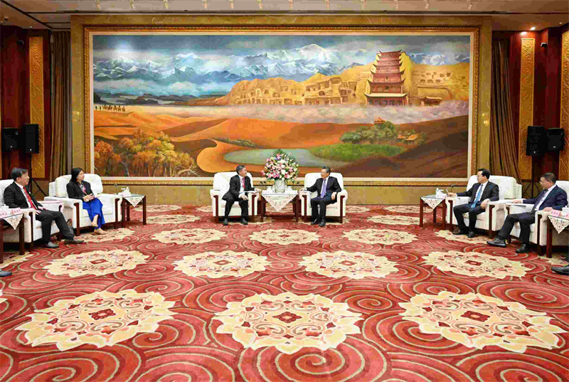 任振鶴對高泉慶一行來甘訪問表示歡迎,并簡要介紹了甘肅經(jīng)濟(jì)社會發(fā)展情況。他說,在習(xí)近平主席和新方領(lǐng)導(dǎo)人戰(zhàn)略引領(lǐng)下,中新關(guān)系保持良好發(fā)展勢頭,甘肅與新加坡在科技、教育、文化、醫(yī)療衛(wèi)生等方面的合作交流不斷深化,人員往來更加密切。習(xí)近平主席指出,甘肅最大的機(jī)遇在于“一帶一路”。隨著高質(zhì)量共建“一帶一路”、西部陸海新通道建設(shè)、新時代西部大開發(fā)、黃河流域生態(tài)保護(hù)和高質(zhì)量發(fā)展等深入實施和《區(qū)域全面經(jīng)濟(jì)伙伴關(guān)系協(xié)定》的全面生效,甘肅歷史文化、資源稟賦、科教人才、工業(yè)基礎(chǔ)、地理區(qū)位的組合優(yōu)勢正在加速釋放,也為雙方提供了更大市場、更多需求、更深層次的合作空間。新加坡中華總商會是新加坡歷史最悠久的重要商團(tuán),在國際商業(yè)舞臺上享有盛譽(yù)。希望商會充分發(fā)揮橋梁紐帶作用,更多宣傳甘肅、推介甘肅,推動甘肅與新加坡各領(lǐng)域合作再上新臺階。我們將持續(xù)營造市場化、法治化、國際化一流營商環(huán)境,為企業(yè)提供優(yōu)質(zhì)高效的服務(wù),讓大家投資在甘肅、滿意在甘肅、收獲在甘肅。