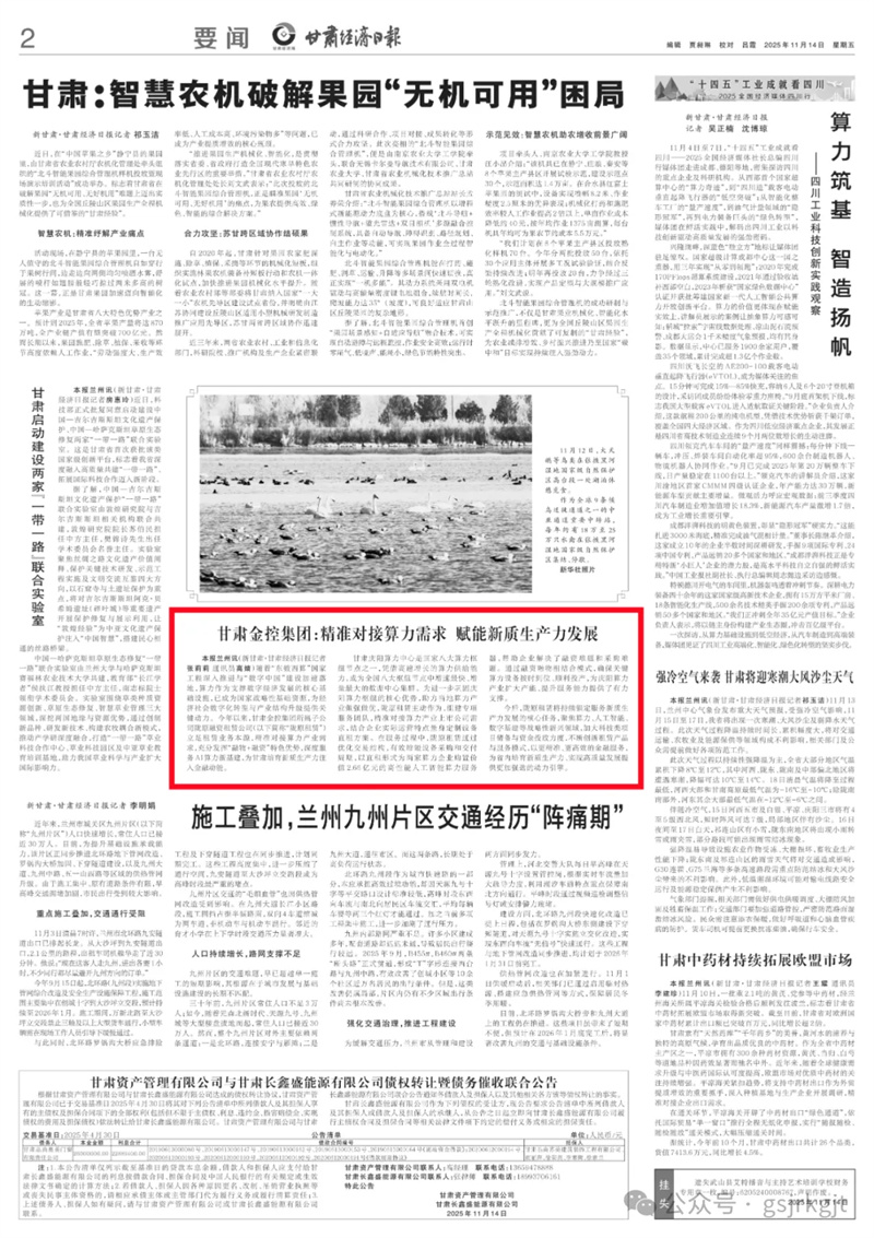 媒體關(guān)注 | 甘肅金控集團:精準對接算力需求 賦能新質(zhì)生產(chǎn)力發(fā)展
