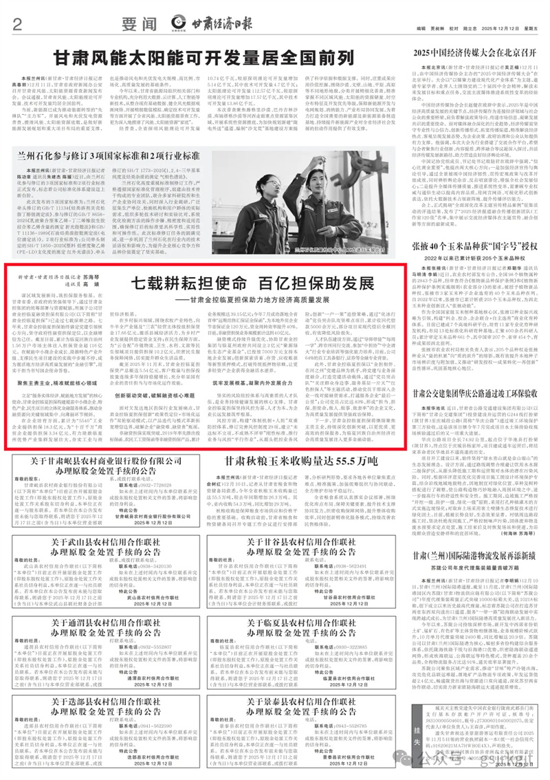 截至2025年11月末,甘肅金控臨夏擔(dān)保資產(chǎn)總額達5.54億元,客戶數(shù)量與擔(dān)保投放量連續(xù)多年保持穩(wěn)健增長,充分彰顯國有企業(yè)的責(zé)任擔(dān)當(dāng)與市場化運作效能。