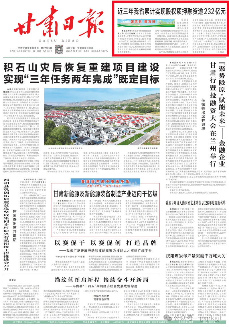 甘肅金控集團(tuán)所屬甘肅股權(quán)交易中心,是省內(nèi)唯一區(qū)域性股權(quán)市場(chǎng)運(yùn)營(yíng)機(jī)構(gòu),為全省非上市企業(yè)股權(quán)登記托管服務(wù)的唯一承接主體。自成立以來(lái),通過(guò)標(biāo)準(zhǔn)化登記托管服務(wù),有效解決非上市企業(yè)股權(quán)確權(quán)難、流轉(zhuǎn)不暢、融資受限的痛點(diǎn),打通股權(quán)質(zhì)押融資的“最后一公里”,為甘肅實(shí)體經(jīng)濟(jì)高質(zhì)量發(fā)展注入源源不斷的資本市場(chǎng)動(dòng)能。