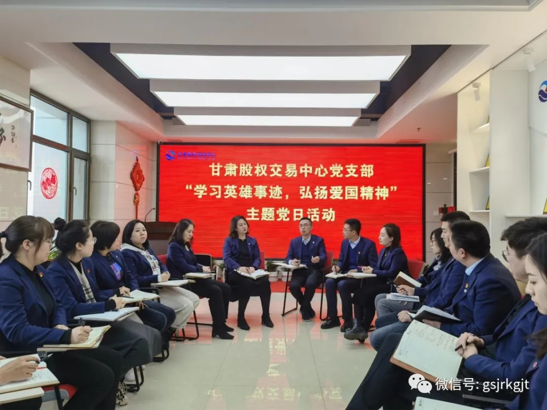 近日,甘肅股權(quán)交易中心黨支部開展“學(xué)習(xí)英雄事跡,弘揚(yáng)愛國(guó)精神”主題黨日活動(dòng)。學(xué)習(xí)戍邊衛(wèi)國(guó)英雄先進(jìn)事跡,弘揚(yáng)偉大愛國(guó)主義和革命英雄主義精神。