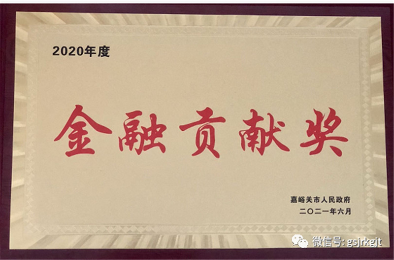 8月11日,金控嘉峪關(guān)擔(dān)保榮獲嘉峪關(guān)市政府全市金融助力高質(zhì)量發(fā)展暨政金企擔(dān)融資對接會上授予的“2020年度金融貢獻(xiàn)獎”,以表彰金控嘉峪關(guān)擔(dān)保在2020年度服務(wù)中小微企業(yè)等方面取得的突出貢獻(xiàn)。