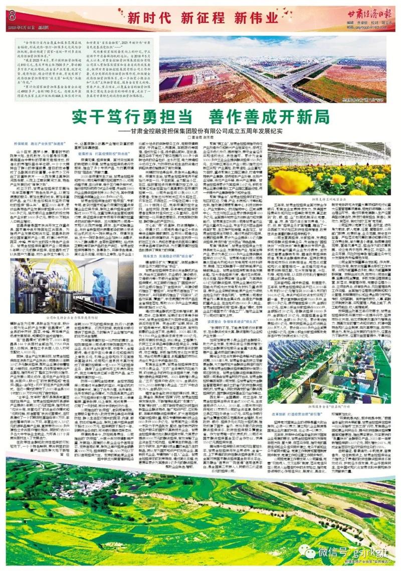 風(fēng)雨兼程里銘刻奮發(fā)向上的印記,守正創(chuàng)新中開啟奮楫揚(yáng)帆的遠(yuǎn)征。自2018年5月成立以來,甘肅金控融資擔(dān)保集團(tuán)股份有限公司深入貫徹落實(shí)國家和省委省政府政策要求,按照甘肅金融控股集團(tuán)有限公司工作部署,充分發(fā)揮政府性融資擔(dān)保作用,積極健全政府性融資擔(dān)保體系,進(jìn)一步拓寬小微企業(yè)和“三農(nóng)”主體融資渠道,服務(wù)全省重大戰(zhàn)略、重要產(chǎn)業(yè)、重點(diǎn)項(xiàng)目,以覆蓋全省的融資擔(dān)保服務(wù)匯聚起惠企強(qiáng)農(nóng)的磅礴力量,走出了一條具有甘肅特色的政府性融資擔(dān)保路徑。
