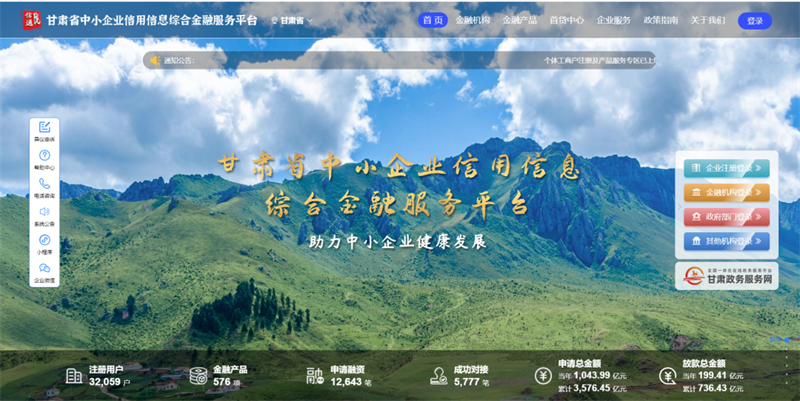 “搭建服務平臺,釋放企業(yè)信用數(shù)據(jù)價值,賦能金融機構更好地服務中小企業(yè)。”圍繞推動甘肅社會信用體系建設,更好地滿足甘肅中小企業(yè)融資需求,根據(jù)《甘肅省中小企業(yè)信用體系建設實施方案》要求,甘肅金控集團發(fā)起設立的甘肅征信股份有限公司應運而生,開啟了甘肅省中小企業(yè)信用信息服務平臺建設及推動信用信息共建共享的新征程。