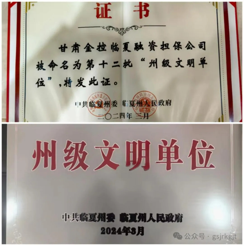 近日,金控臨夏擔(dān)保被臨夏州委、州政府授予第十二批“州級(jí)文明單位”稱號(hào),標(biāo)志著公司精神文明建設(shè)工作取得了新成果、再上新臺(tái)階。