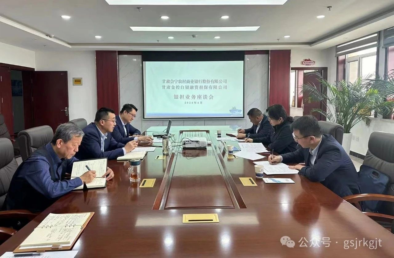 近日,會(huì)寧農(nóng)商銀行副行長繆飛娟等一行3人到訪金控白銀擔(dān)保,雙方就開展銀擔(dān)業(yè)務(wù)合作召開了座談會(huì)。