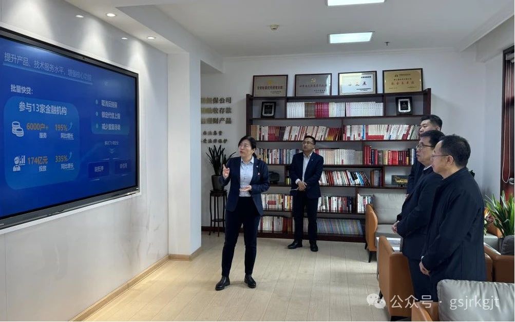 調(diào)研組一行聽取了金控?fù)?dān)保基本情況和經(jīng)營狀況介紹,詳細(xì)了解金控?fù)?dān)保以控股模式推進(jìn)一體化體系建設(shè)、以數(shù)智創(chuàng)新賦能高質(zhì)量發(fā)展等情況,并觀看了金控?fù)?dān)保信息系統(tǒng)和項(xiàng)目管理系統(tǒng)演示,對金控?fù)?dān)保運(yùn)用“科創(chuàng)保”“設(shè)備擔(dān)”等專項(xiàng)產(chǎn)品服務(wù)保障“兩新”“兩重”政策的做法給予肯定,希望甘肅和安徽兩省政府性擔(dān)保機(jī)構(gòu)加強(qiáng)交流合作,在服務(wù)重大戰(zhàn)略和地方經(jīng)濟(jì)方面作出更大貢獻(xiàn)。