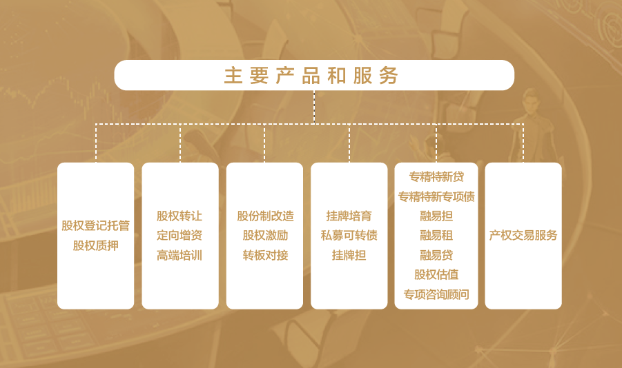 經(jīng)營范圍包括:為非上市企業(yè)的股權(quán)登記、托管、轉(zhuǎn)讓、交易、融資、結(jié)算、過戶、分紅、企業(yè)規(guī)范、培育等提供場所和服務(wù);組織和監(jiān)督股權(quán)托管交易活動(dòng);發(fā)布市場交易信息;為非上市公司進(jìn)場掛牌提供融資、咨詢等綜合服務(wù);為各類企業(yè)提供股權(quán)轉(zhuǎn)讓及增資擴(kuò)股、實(shí)物資產(chǎn)、債權(quán)、不良資產(chǎn)和集中采購等產(chǎn)權(quán)交易業(yè)務(wù)服務(wù),以及政策咨詢、方案設(shè)計(jì)、項(xiàng)目推介、資產(chǎn)盡調(diào)等增值服務(wù)。